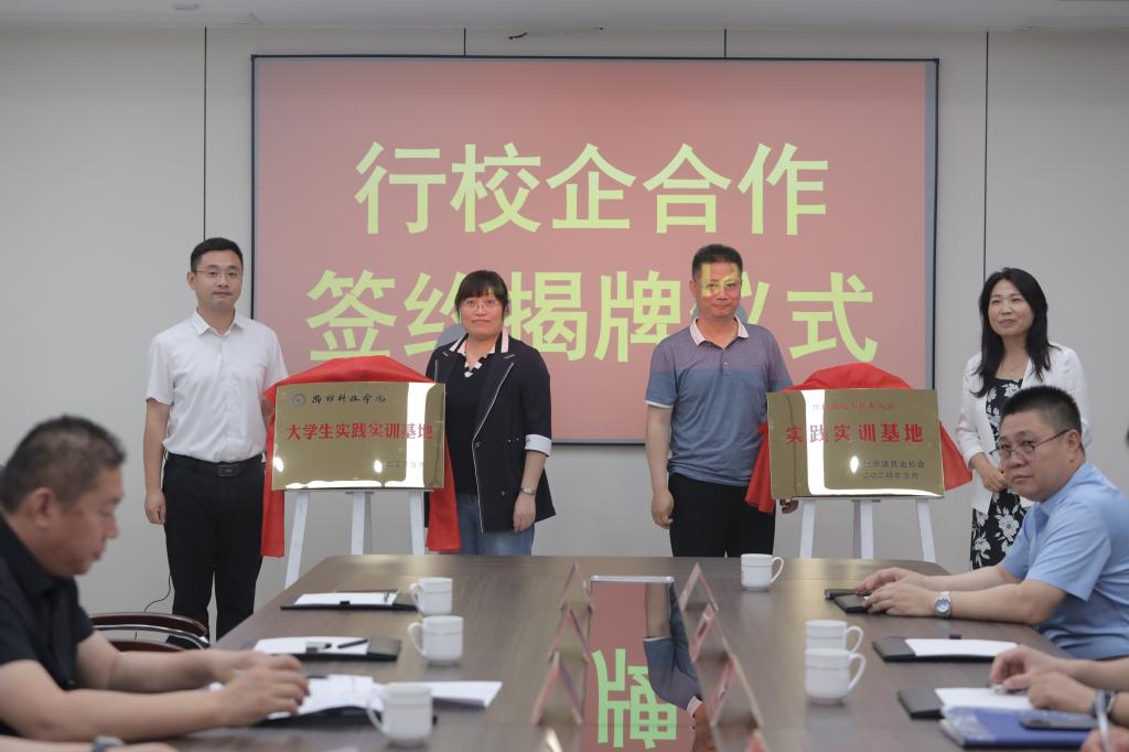 在与会人员共同见证下,行校企三方正式签署了合作协议,并为大学生实践实训基地揭牌。三方将在实践教学、课程开发、科研合作、师资互聘等方面展开深度合作,共同打造产学研一体化的合作模式。