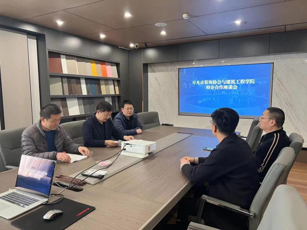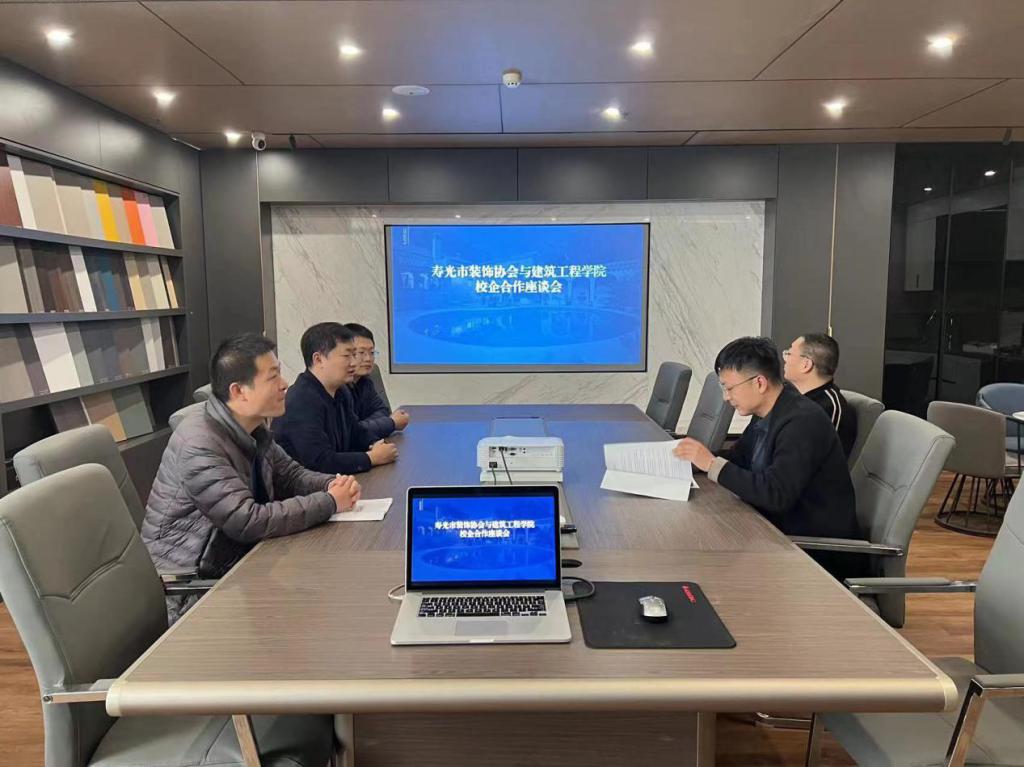 座谈会上,寿光装饰协会负责人对我院到访人员表示热烈欢迎,他主要围绕当前装修公司的发展历程、发展现状、用人需求、企业的核心技术和校企合作成果方面进行了介绍。他表示寿光装饰协会发展快、势头猛,人才需求迫切,期待学院进一步加强校企合作力度,为企业输送优秀人才。随后,王腾院长介绍了本次“访企拓岗促就业”的主要意向,并从学院发展历程、办学条件、人才培养特色、学生发展与就业意向等方面介绍了学院的基本情况,表示希望通过走访调研企业,全面了解用人单位人才需求,为学院人才培养、实习实训、就业岗位提供、校企产学研深度合作搭建平台。最后,双方围绕学院与企业发展、岗位需求、实习就业等内容进行了友好交流、深入探讨,达成了初步合作意向,本次访企拓岗,寿光市创意装饰工程有限公司共提供3人实习岗位。