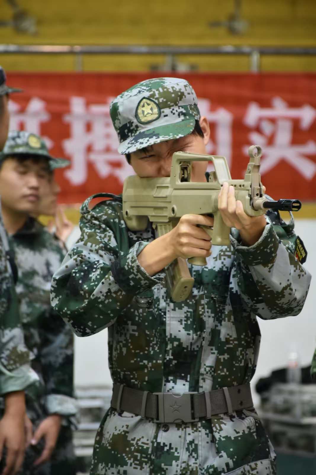 打靶活动开始前,新生们按连队在体育馆场馆前列队等候。他们虽难掩期待与激动,不时低声交流射击技巧,但始终保持队列规范,脚步整齐、精神昂扬。在教官引导下,他们依次完成身份核验与安全须知学习,带着对数字实弹射击的憧憬进入射击区域,整个过程秩序井然,尽显土木学子的纪律素养。