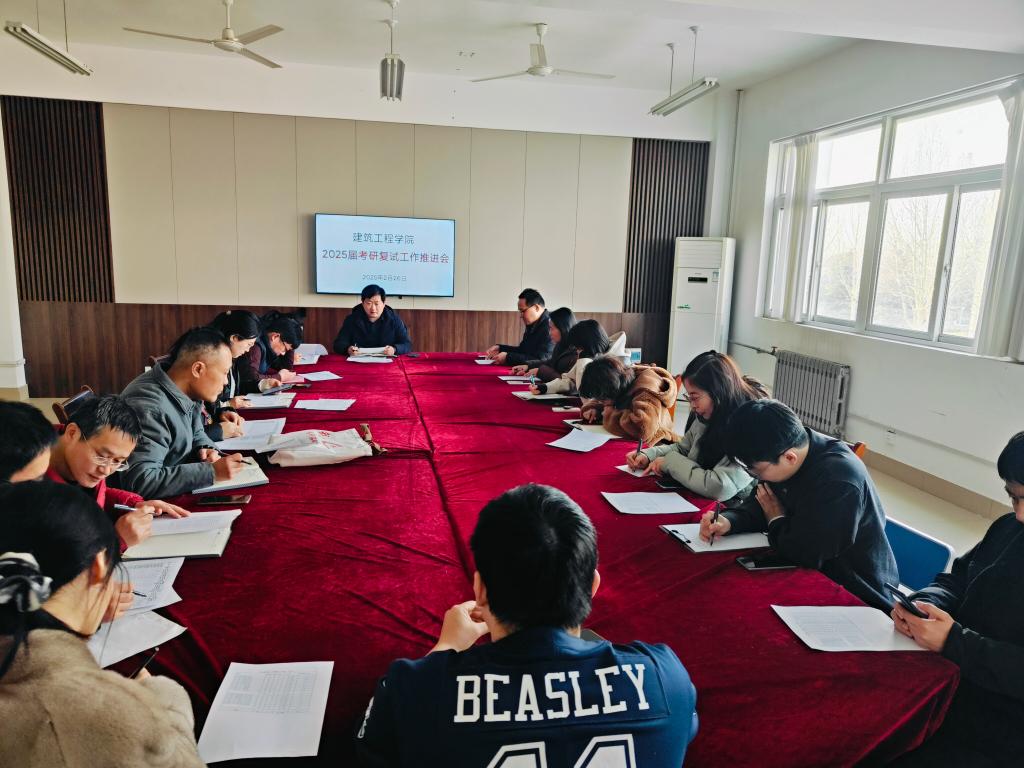 会上,王腾结合建筑工程学院和建筑行业现状,对2025届考研复试工作进行了全面部署。他指出,考研复试是学生升学深造的关键环节,要针对不同学生的实际情况,开展分类指导、个性化辅导,帮助学生制定科学合理的复试策略,提升复试成功率。张培明强调,各系主任要充分发挥学院教师的积极作用,为学生面试及调剂提供全方位的服务和支持。他要求,全体教师要高度重视考研复试工作,确保不漏下任何一个学生,不放过任何一次机会,为建筑工程学院的考研工作贡献自己的力量。