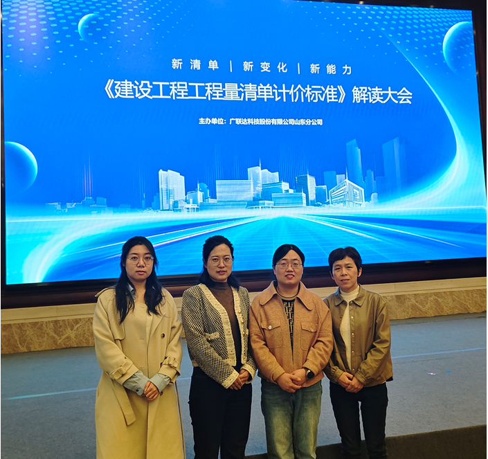 为帮助造价从业人员正确理解和准确应用2024版《建设工程工程量清单计价标准》(GB/T50500-2024),广联达股份有限公司山东分公司特举办《建设工程工程量清单计价标准》解读大会。会议邀请计价标准起草核心专家对新清单内容进行深入解读和答疑,旨在帮助行业从业者学习新标准、实施新标准,提高认识,共同推动新清单标准的落地实施,提升行业整体竞争力,推动行业高质量发展。建筑工程学院工程管理系李来凤、杨军、陈海燕、刘佳琪四位教师于2025年3月26日参与该培训,学习新清单标准的变革要点。