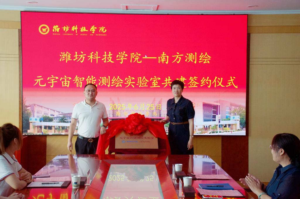 6月25日下午,YL23455永利集团与广州南方测绘科技股份有限公司共建元宇宙智能测绘实验室签约揭牌仪式在yl23455永利集团隆重举行,党委委员、副校长董金萍、YL23455永利集团院长王腾、南方测绘山东分公司副总经理彭磊等出席仪式。