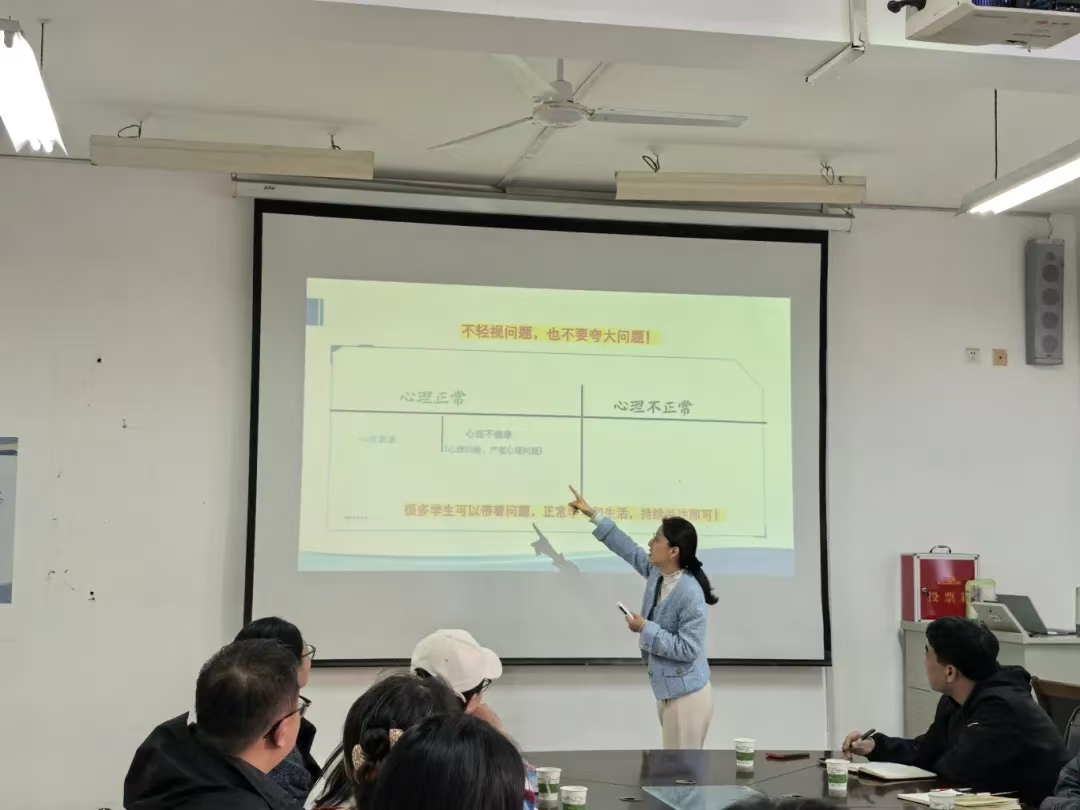 培训尾声,文学院党支部副书记唐玉海作总结讲话,对本次培训的核心内容与实践价值进行梳理提炼。现场辅导员围绕实操难点、场景应用等展开互动交流与提问探讨,进一步深化了对心理健康教育工作的认知与理解,为后续精准开展学生心理疏导、筑牢校园心理防护线提供了坚实的思路支撑与方法指导。