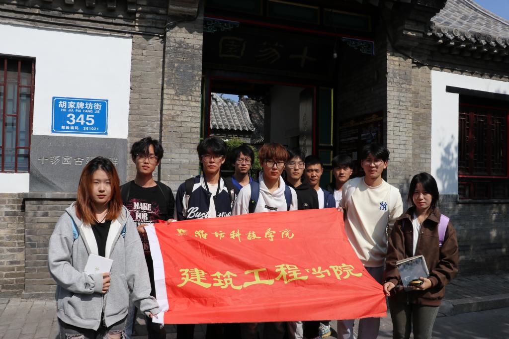 2024年10月12日,yl23455永利集团建筑工程学院2022级建筑学专业31名学生来到潍坊十笏园进行古建筑测量测绘实习。
